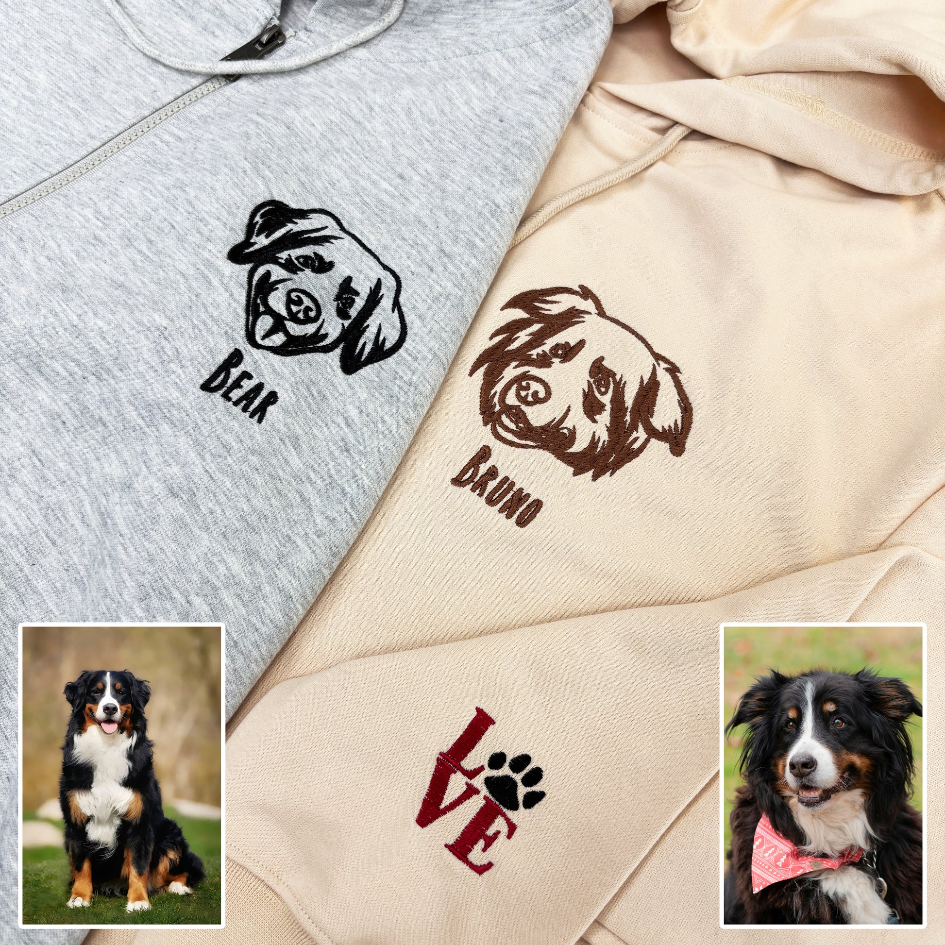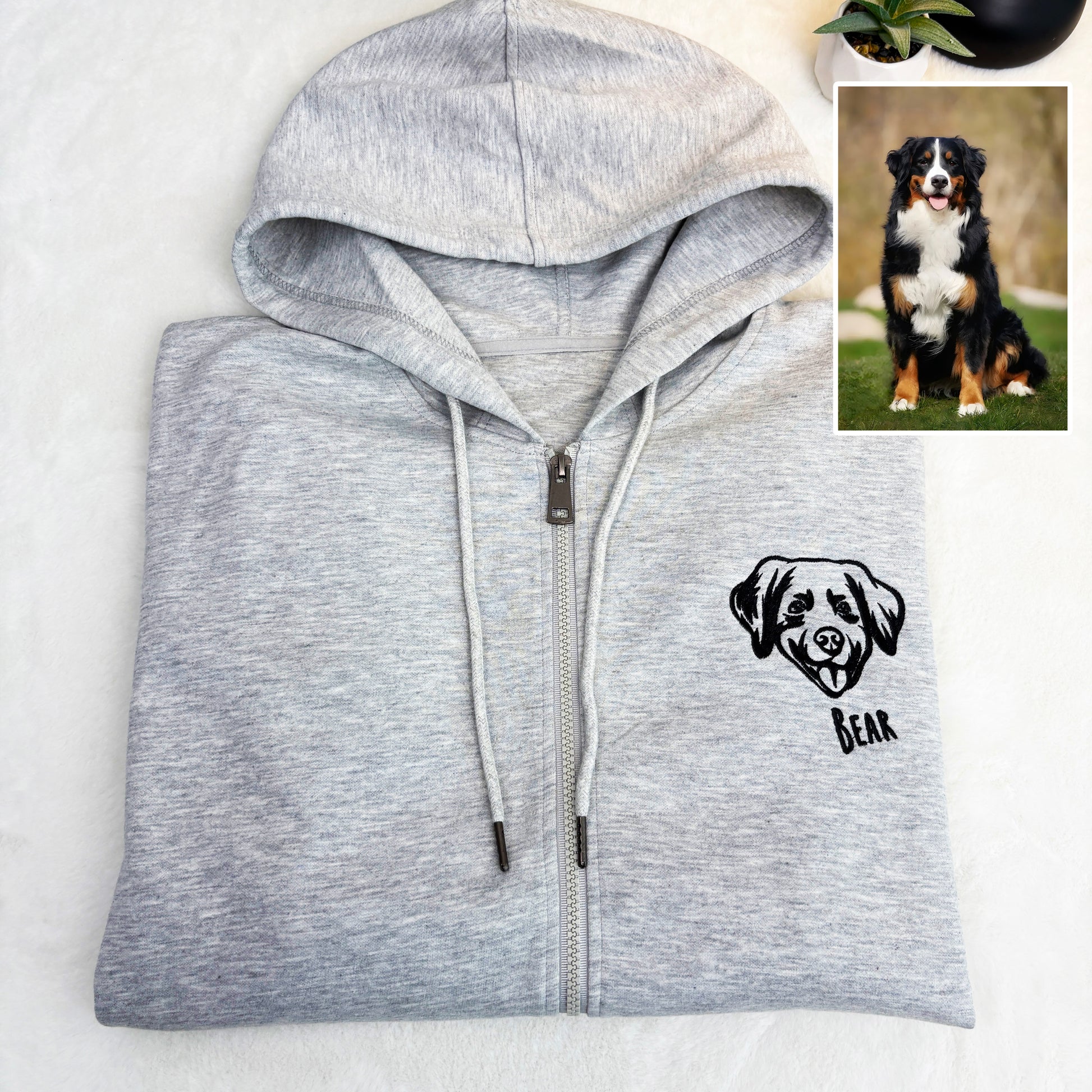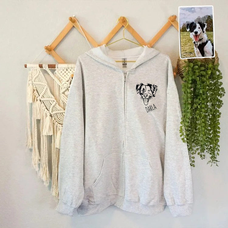Custom Embroidered Pet Portrait Hooded Zip Up Hoodie