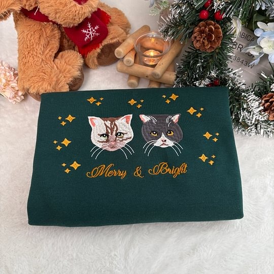 🎄Holiday magic meets handmade charm – Upload your favorite pet photo, and our artists will turn it into a retro-style embroidered portrait with adorable Christmas touches like Santa hats, snowflakes, or holly.