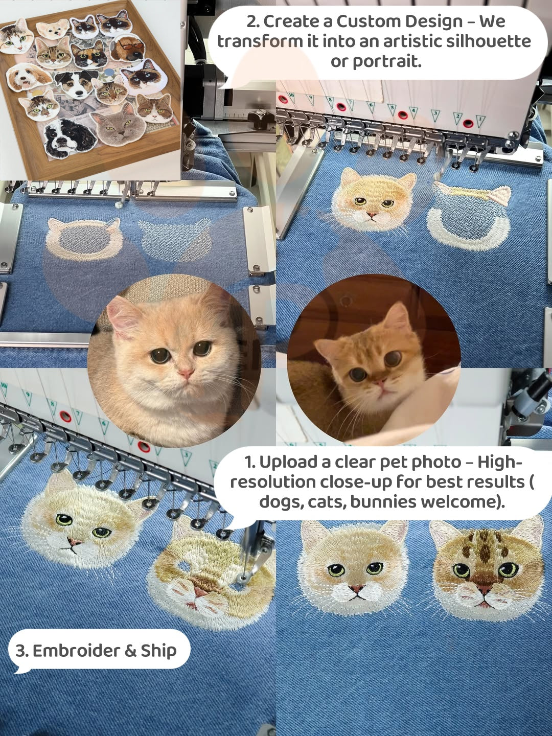 ✨ Hand-drawn & hand-stitched: Every design starts with a custom illustration, ensuring your pet’s unique features are captured with love.