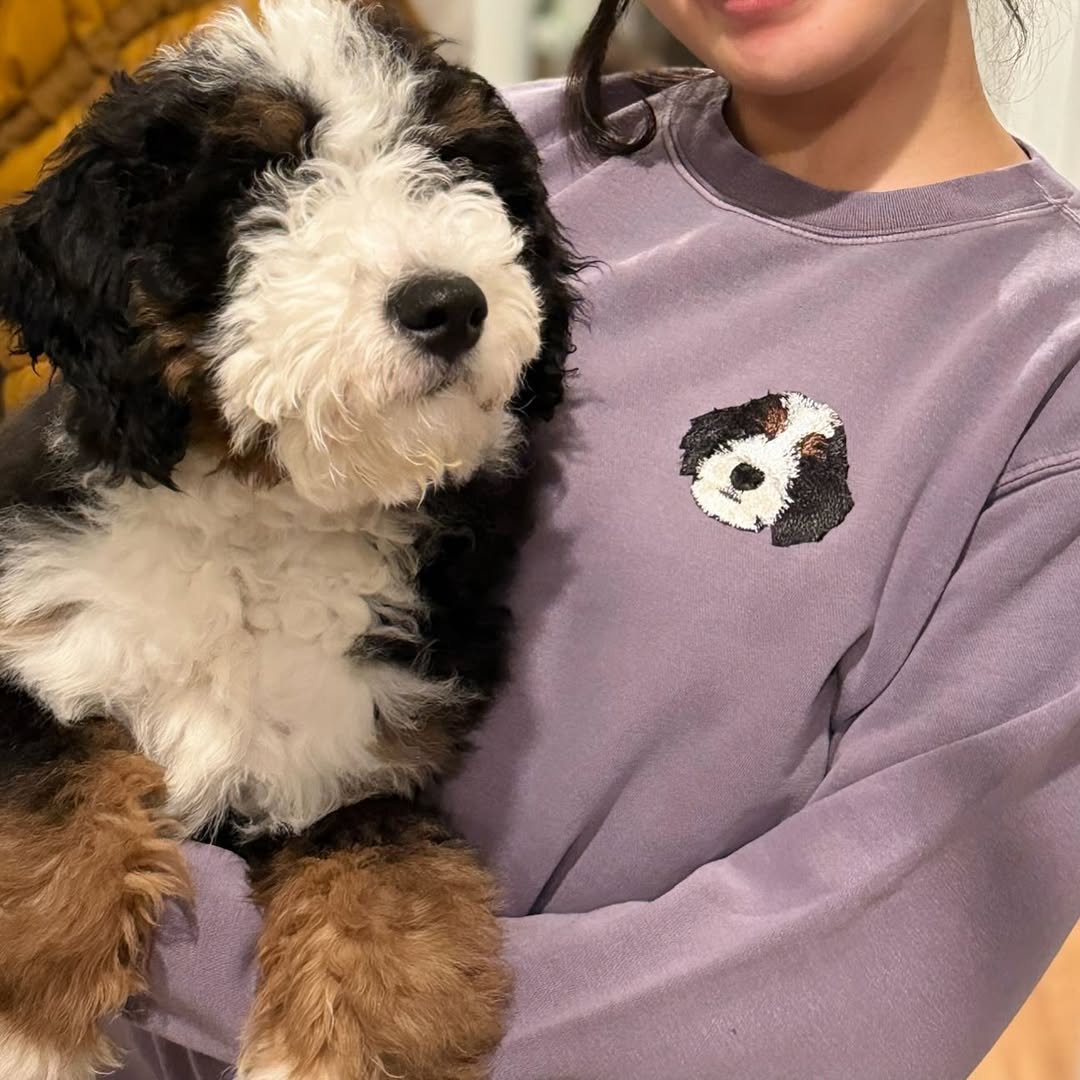 Show off your furry friend's face with stunning embroidery, while proudly declaring your love to the world. Bring their face to life with an embroidered portrait, adding a personal and heartfelt touch. Make a statement and show off your one-of-a-kind style with this custom hoodie!